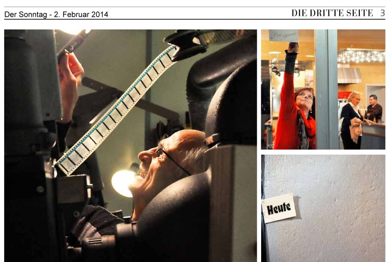 roten Korb durch die Reihen. Ihr Kino in Waldshut hat Albrecht umgerüstet, mit neuester Digitaltechnik ausgestattet. Die Filme kommen jetzt auf Festplatten, nicht mehr auf Rollen. Das Bild ist heller, schärfer und „irgendwie plastischer“, sagt die Chefin. Aber für Rheinfelden auch noch Digital-Projektoren zu kaufen,hätte den Familienbetrieb überfordert. Seit Weihnachten laufen dieselben drei Filme Eigentlich sollte erst Ende des Jahres das Zeitalter des 35-Millimeter- Films beendet werden. Doch die großen Filmverleiher machten schon zum Jahreswechsel Ernst mit der Digitalisierung. „Wir bekommen keine Kopien mehr“, sagt Filmvorführer Gutheil. Seit Weihnachten laufen im Ali dieselben Filme. Am Ende des Abends wird Gustav Gutheil den „Hobbit“, „Fack ju Göhte“ und „Das erstaunliche Leben des Walter Mitty“ von den großen Teller-Spulen herunter auf mehrere kleinere wickeln und die insgesamt etwa zehn Kilometer Film in Kartons verpacken. Der Filmspediteur wird sie abholen, der Verleihfirma zurückbringen und wissen, dass es seinen Beruf bald nicht mehr geben wird. Das digitale Kino braucht solche spezialisierten Logistiker nicht mehr. Gutheil geht es ähnlich. Schon zum zweiten Mal.Gelernt hat der 64-Jährige den Beruf des Schriftsetzers. In einer Zeit, als Buchstaben noch aus Blei waren. Jahrhundertelang war das so. Dann fegte der Offsetdruck den Bleisatz davon. Gutheil wechselte 1969 den Beruf, wurde Filmvorführer bei den Albrechts. Und heute muss er erneut mitansehen, wie ein technischer Epochenwechsel sein Handwerk entbehrlich macht. „Das geht nicht ganz spurlos an mir vorüber“, sagt er. Bis Ende des Jahres hätte Gutheil gerne noch gearbeitet,jetzt hofft er darauf, dass die umstrittene Rentenreform der großen Koalition Realität wird. Dann stünde ihm die volle Rente zu. An was sich Gutheil erinnert, wenn er auf seine Kinojahrzehnte zurückblickt? An einen besonderen Film vielleicht? – „Ich schaue keine Filme mehr“, sagt er und fügt schnell hinzu, fast entschuldigend: „Es sind ja drei Säle zu bedienen,mit Vorfilmen. Das ist schon ein Gerenne.“ Gutheil startet den CD-Player, um die Pause in Saal 2 zu überbrücken. Er wechselt den Film im Rekordtempo. „Ernemann IX“ schnurrt aufs Neue, unermüdlich. Als wüsste er nicht, dass bald sein letztes Stündlein geschlagen hat. Während die Zuschauer in allen drei Sälen noch auf die Leinwände starren, herrscht im Foyer Aufbruchstimmung. Aus der Popcornmaschine werden die Reste herausgeschaufelt. Mit einer kleinen Trittleiter versucht Eisverkäuferin Concettina Bergmann, an die Pinnwand heranzukommen. Eine grimmige Gestalt aus „Der Hobbit“ schaut ihr über die Schulter, dann sind die Plakate abgehängt. Ursula Albrecht steht vor der Kasse und unterhält sich mit zwei älteren Herren, die gerade hereingekommen sind. „Man könnte doch Geld sammeln, eine Art Aktiengesellschaft gründen“, schlägt einer der beiden vor. Ideen, um das Kino zu retten, gab es schon viele. „Wenn es um Geld geht, ist es mit der Unterstützung schnell vorbei“, antwortet sie. Die beiden Herren nicken verständnisvoll. Draußen erhellt eine Neonröhre den fast leeren Schaukasten, die Leuchtbuchstaben auf dem Vordach sind kaputt. „Ab 1. Februar 2014 geschlossen“, steht auf einem einsamen Zettel. Darunter: „Bei Anfragen wenden Sie sich bitte an welcome-at-albrecht-kino.de.“ Vielleicht meldet sich ja noch jemand, der das Ali in die digitale Zukunft führen will. Erschienen in „Der Sonntag (Freiburg)" vom 2.Februar 2014 („Die dritte Seite“) Mein Dank gilt Christiane Jundt, die mir diesen Artikel zusandte, und Daniel Gräber, der mir ohne zu zögern die Veröffentlichungserlaubnis auf www.massenmedien erteilte.